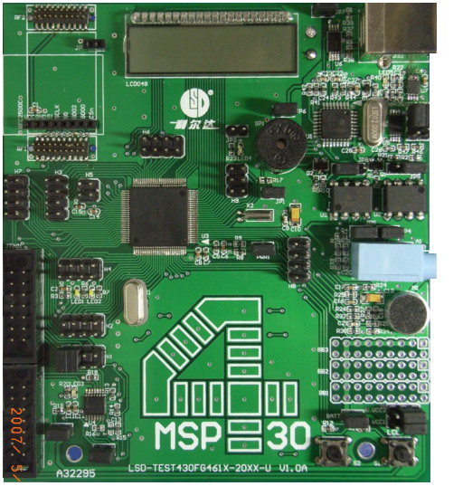 类型 TI德州仪器 型号 LSD-TEST430FG43X 购买 简介 本学习板采用美国德州仪器公司的 MSP430FG43X系列芯片为主芯片 (请参考: MSP430FG43X混合信号微控制器.pdf),针对其较为特殊的外围模块,12位A/D转换器、12位D/A转换器、DMA控制器、OA放大器,以及MSP430系列单片机自身的超低功耗以及 超低端口漏电流的特点, 作了相应的实验安排。通过这些实验,可以进一步了解 MSP430FG43X单片机,根据其功能和特点,将此款单片机应用到自己的产品中