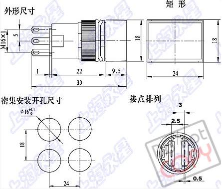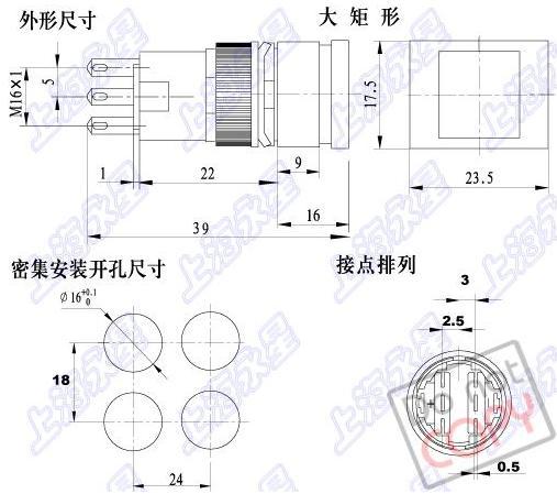 电气额定值(阻性负载):3A 250V/AC 接触电阻(初始值):小于等于50毫欧